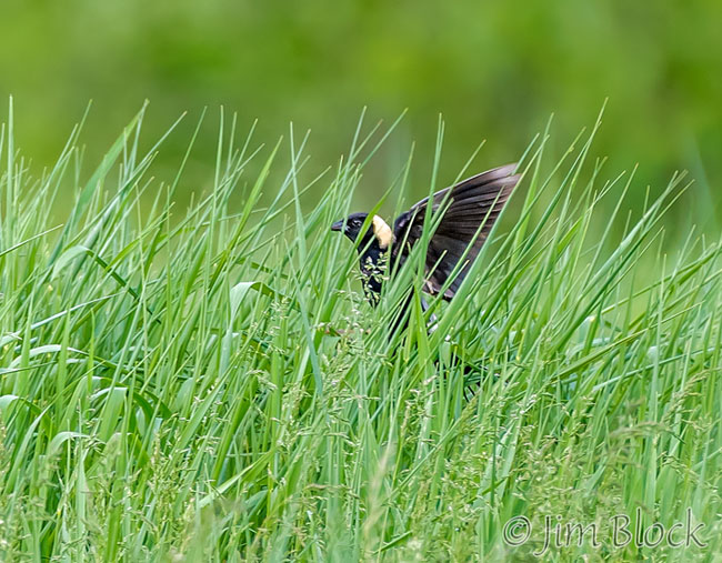 As we exited our car many Bobolinks were singing. I managed to get one landing in the tall grass.