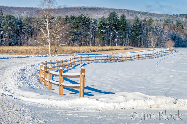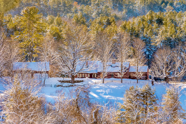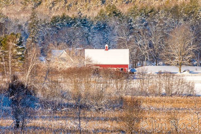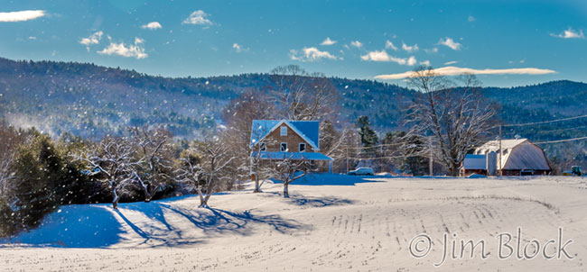 I made my way over to Thetford, Vermont and got this photo. It was not snowing; the flakes you see are blowing from the trees behind me.
