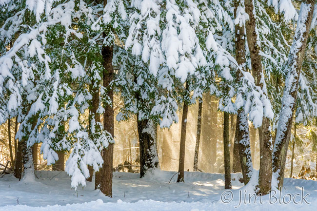 Although the predictions ranged up to 12-24 inches, we got only about 6-8 inches of snow December 29. The snow stayed on the trees for a few hours the next morning before the wind brought it down. I used this opportunity to get out and take some photos.
