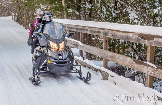 That afternoon I went XC-skiing along the Rail Trail in Lebanon. I snapped this photo of one of the 10 snowmobiles that I saw.