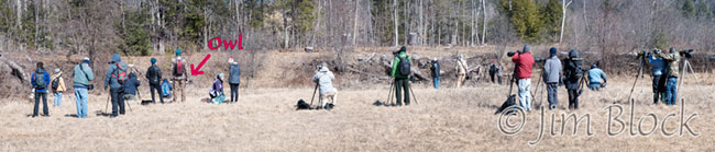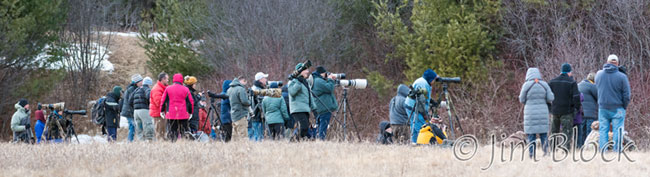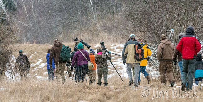 It landed, the crowd followed it south down the field, then it flew again. A snow squall appeared out of nowhere, so I figured that it was a good time to leave. It was pretty dark by then anyway.