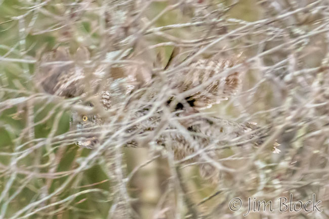 At 4:48 the owl finally decided it was time to hunt. I had positioned myself with my back to the wind so when it left its low perch it flew right by me. Here is a sequence of it preparing to launch and the first part of its flight.
