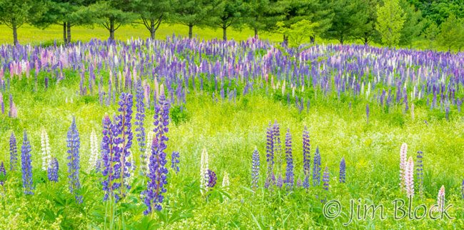 I photographed a beautiful field of lupines in a neighbor’s yard yesterday. I’m told this field is the natural result of four lupines transplanted from a friend’s driveway where they were “weeds”, 18 years ago. It is mind boggling how the huge variety of colors and shapes could develop when many lupine fields are a fairly uniform purple.