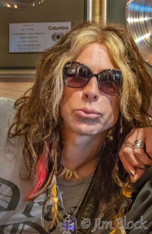 After pausing briefly outside the Livery, which has a huge Aerosmith Memorabilia Exhibit, he went inside.