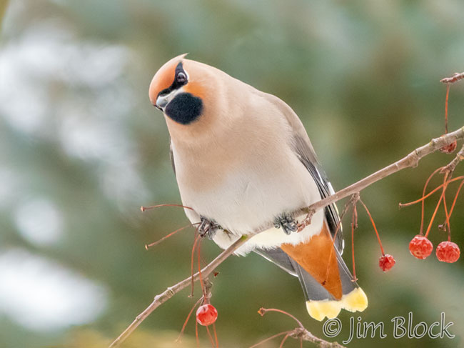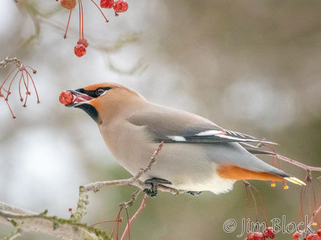 Here are Bohemian Waxwings with their red butts (rufus undertail coverts, for those who prefer more technical terms).