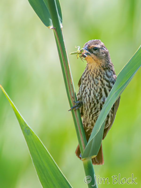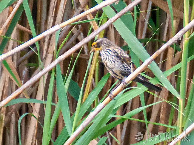 I also got a distant photo of a female Red-winged Blackbird with unusual coloration.