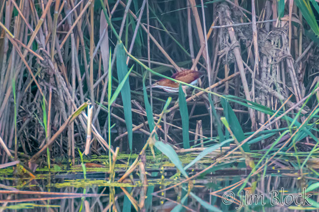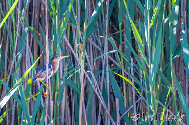 I could only spend 15 minutes during my second visit, but a Least Bittern appeared soon after I arrived and stayed visible until I had to leave. Here are photos I took, also at a considerable distance. I believe this bird is a female or a juvenile.