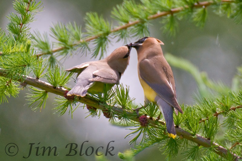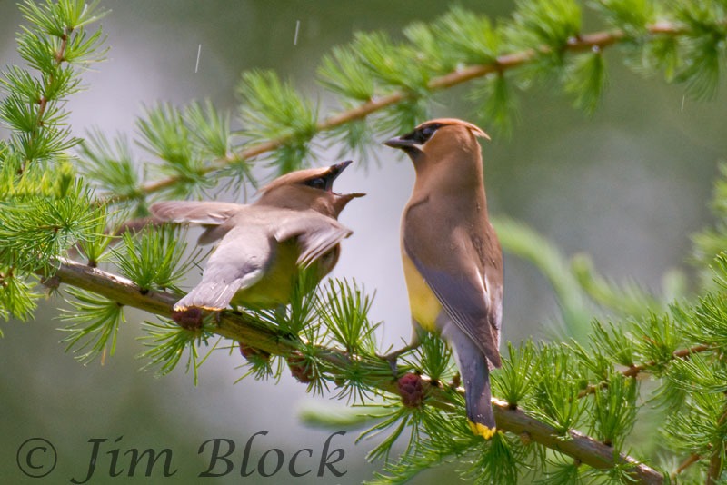 A dozen years ago, I witnessed a similar event in light rain between a pair of Cedar Waxwings at the Bear Pond Natural Area, a UVLT site in Canaan, NH. This is a great place to see Canada Warblers. I have been there numerous times solo and with Len Reitsma, who has studied them there for many years.