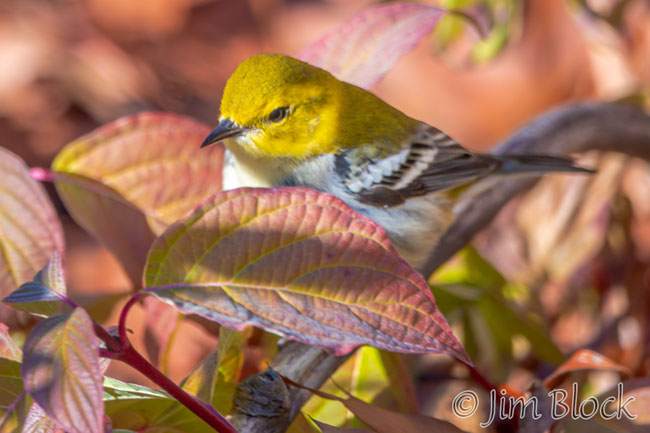 A walk along the Rail Trail in Lebanon with Jann gave us great views of a fast moving Black-throated Green Warbler.  This is a fairly common species in this area — though it is rarely seen — but it is very unusual to see one around these parts in November.  Most of these long-distance migrators are already in Cuba, the Dominican Republic, or Central America for the winter. I only had my walk-around camera with me, but I was able to get a few photos. This was most likely a female or immature bird because of the lack of a distinctive black throat.