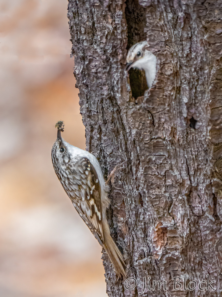 In the spring of 2022 I heard from a friend in Lebanon that Brown Creepers were nesting down the road from her house. They nest under peeling bark of dead or dying trees, normally not too far off the ground. This nest was very well situated. I visited the nest five times setting up in a spot where I was not disturbing them. It was a lot of cold waiting for action, but I was overjoyed to get the photos. Here is a slide show from this nest.