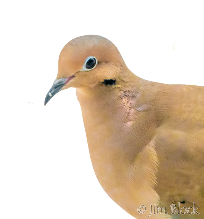A Mourning Dove found a small patch of white snow that had slid from our roof and still remained.