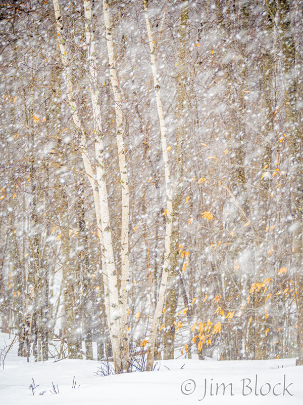 It snowed a bit on March 14. The birch behind the moving snowflakes made a nice white palette for the yellow beech leaves that remain during the winter. A Tufted Titmouse looked a bit puzzled by the snow.