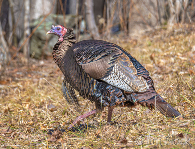 This is the season when turkeys start displaying. I did not catch this one in action, but he was keeping his eyes on a group of females more than worrying about me.