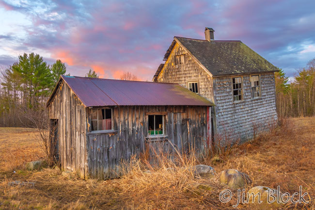 On April 10, I tried for a sunrise on Lake Mascoma but nothing much materialized.  When I found these old buildings in Enfield, the sky was getting a bit of color in the southwest.