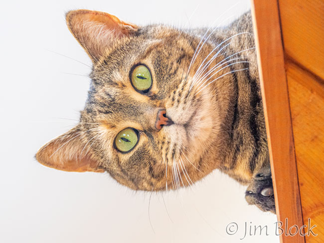Rilla, looking down from our bedroom loft, bids you a happy spring .
