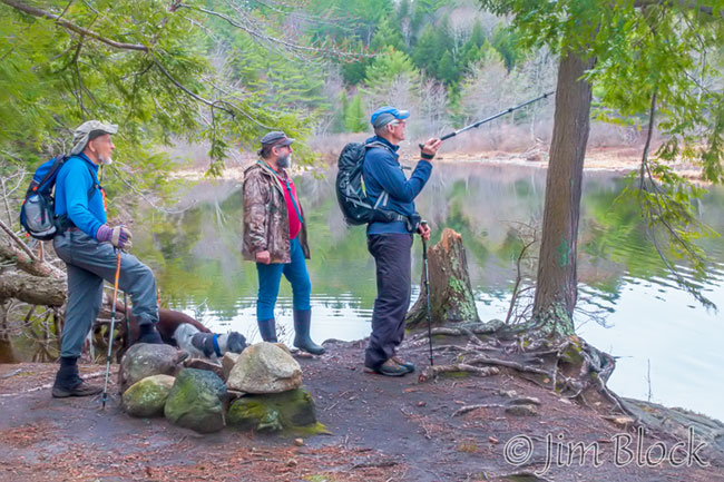 In late April four friends hiked the entire length of the Colette Trail in Enfield. Here are my three companions near the spot where Bicknell Brook empties into Crystal Lake.