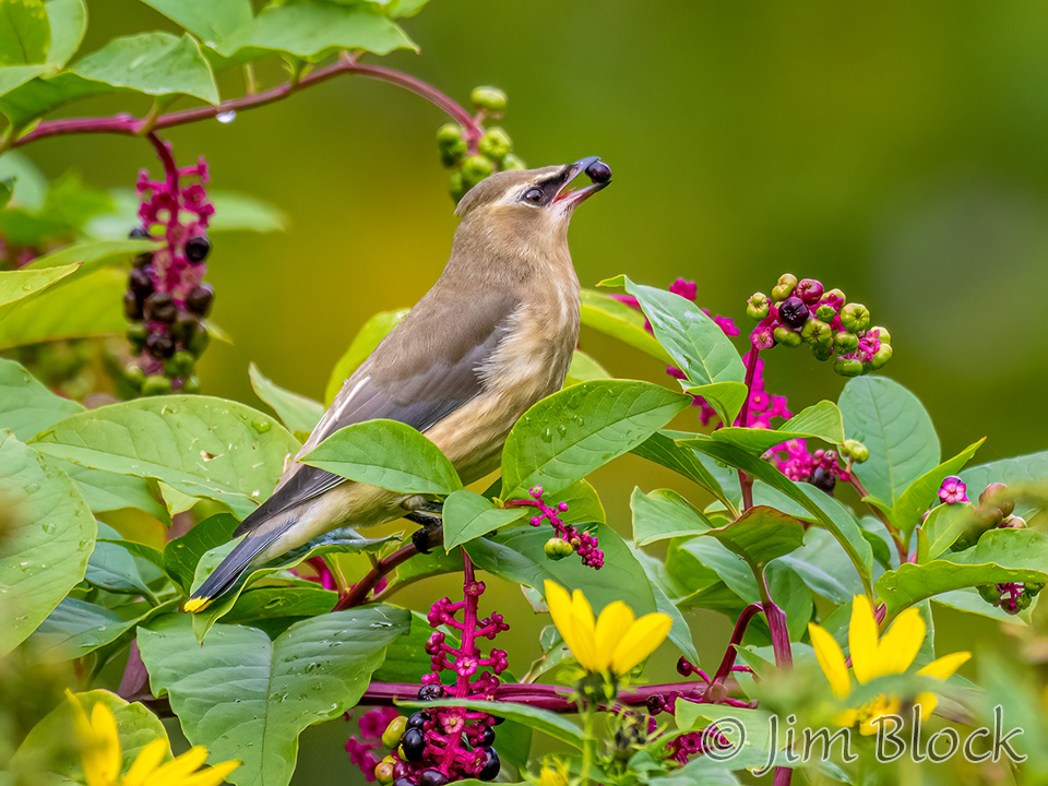Back in Norwich, I photograped an adult Cedar Waxwing feasting on American Pokeweed, a poisonous, herbaceous perennial plant. But appartly it is poisonous to humans, not birds.