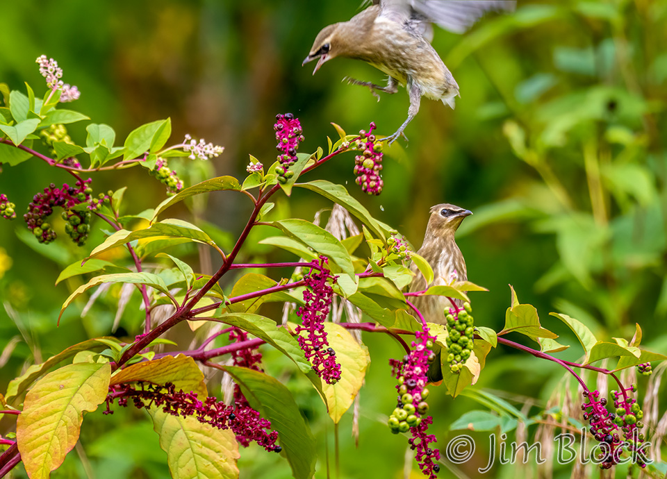 Here is a series of photos of immature birds feeding on the pokeweed.