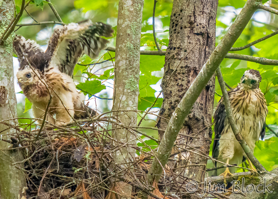 I could not tell if both chicks ventured out of the nest or if only one moved to branches to the left and right.