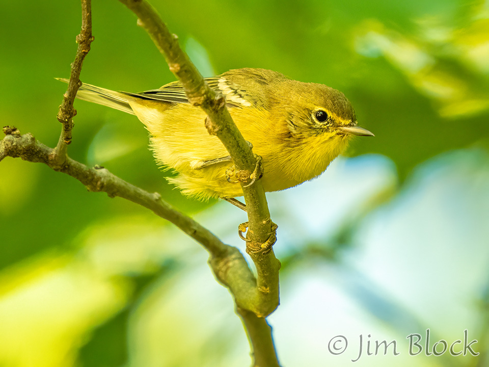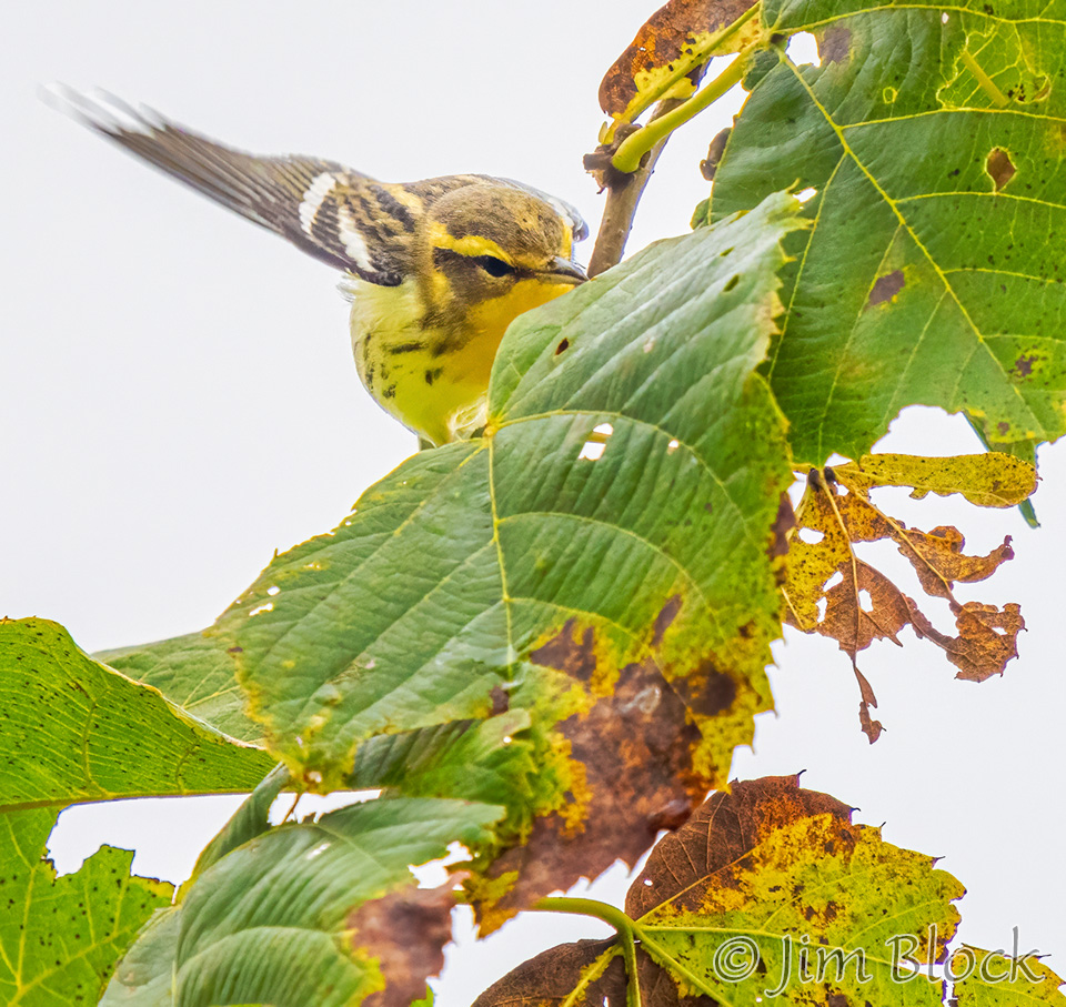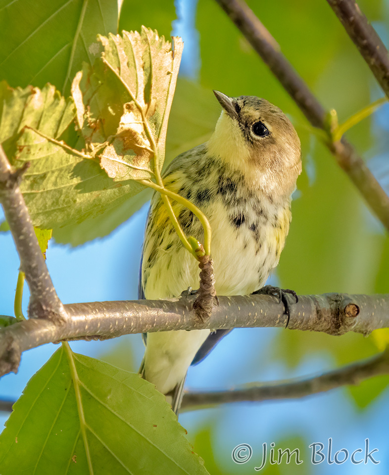 My grandson visiting from Wisconsin and I were about to hike Bog Mountain in Wilmot. And then we saw birds! Unfortunately I only had a short lens, but I got this highly cropped shot of a Blackpoll Warbler. It looks nothing like a spring male.