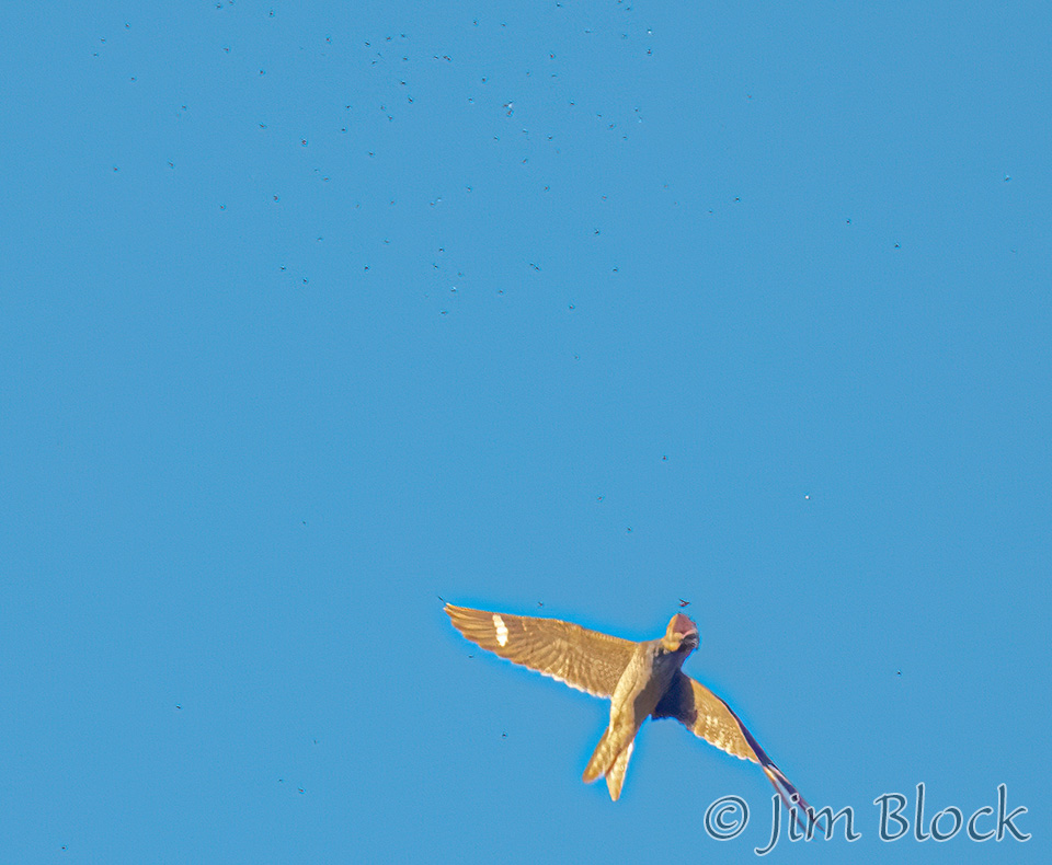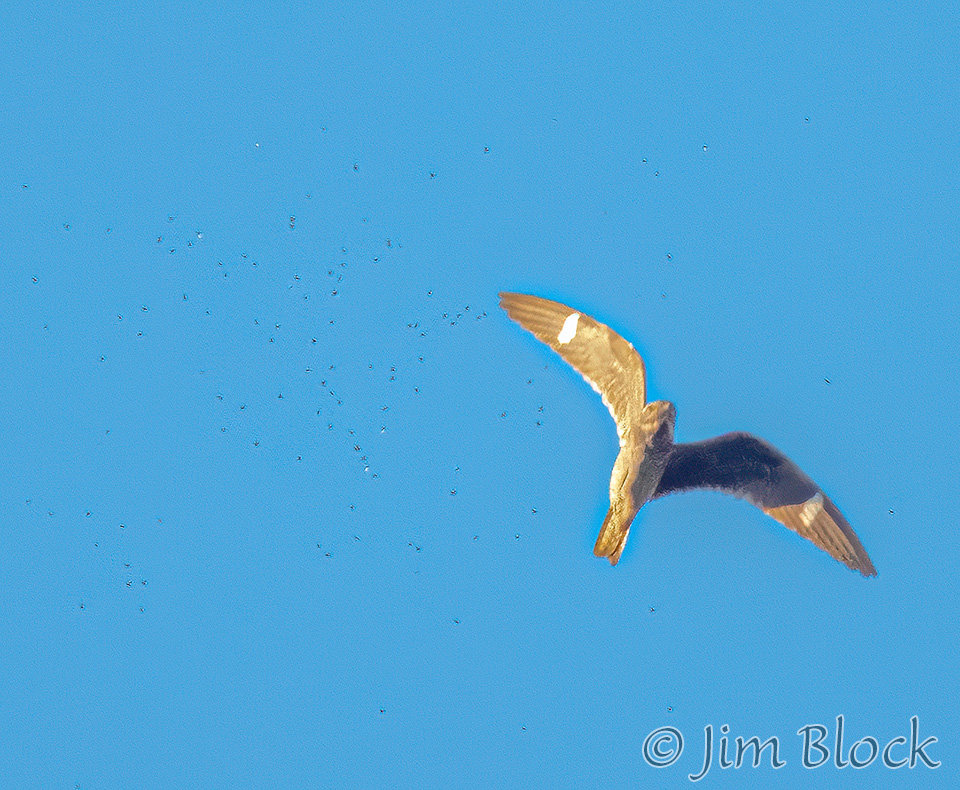 This photo shows the flying ants (tiny black spots) that the nighthawks were feeding on.