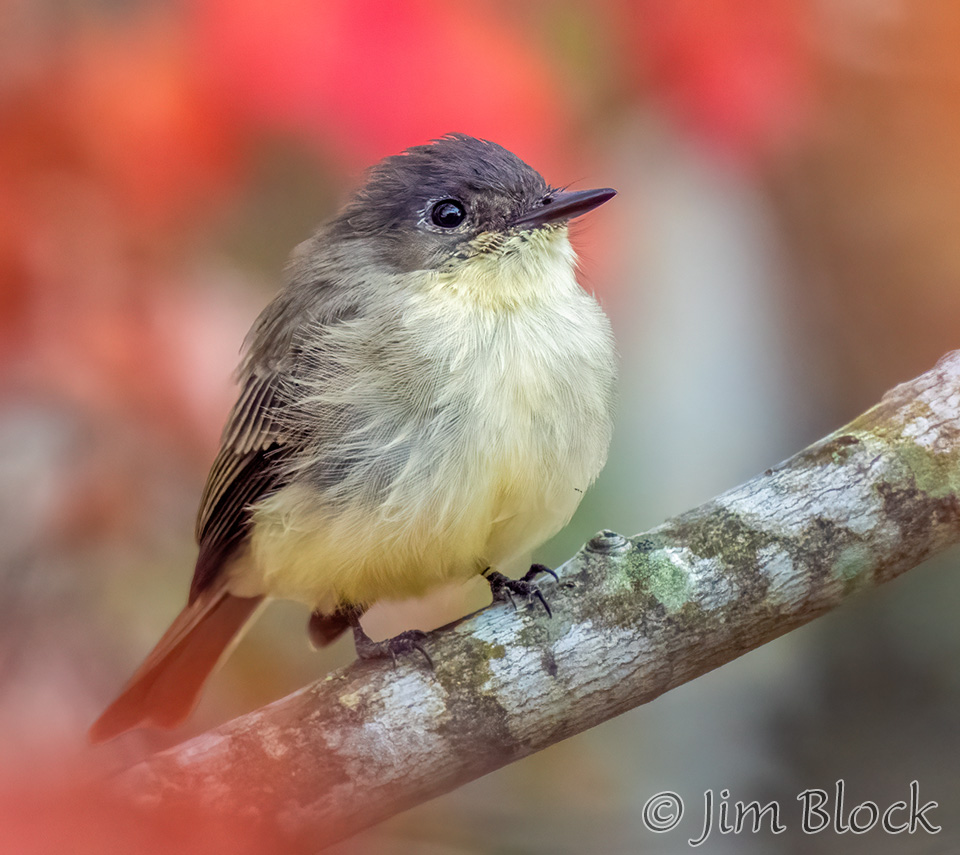 We had a pair of Eastern Phoebes in our Etna yard again this year. They are regulars. In late September a half dozen or more moved through our trees. The red maple provided a colorful background and blurred foreground for two of the photos.