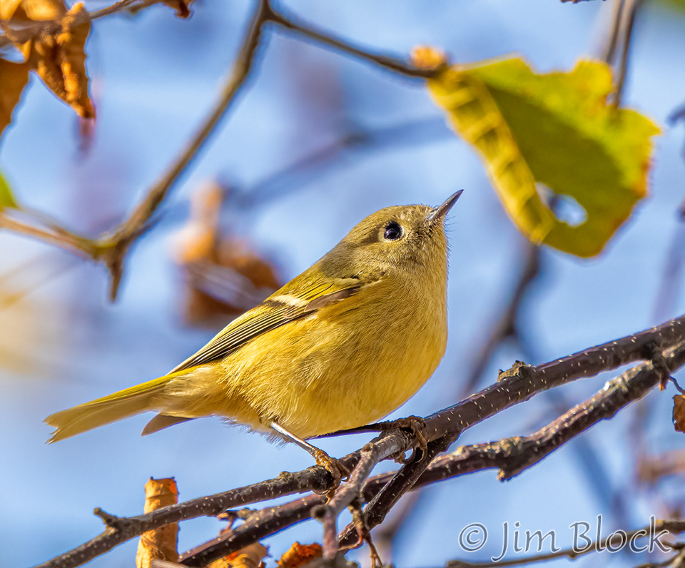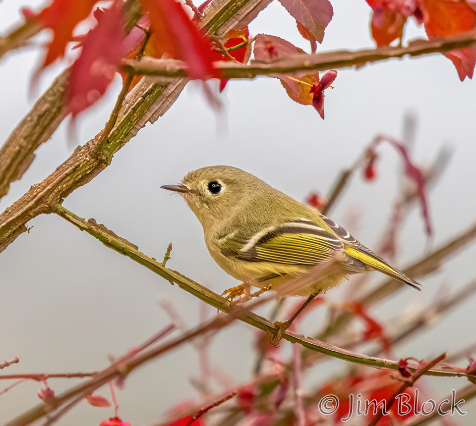 I started this post with Ruby-crowned Kinglets in colorful foliage. Here is a slide show of a half-dozen more from Mill Pond and our yard in Etna. The bird is showing its ruby crown in one photo.
