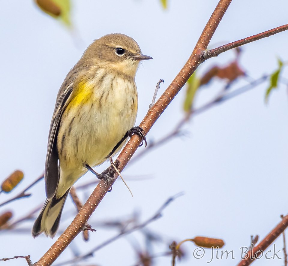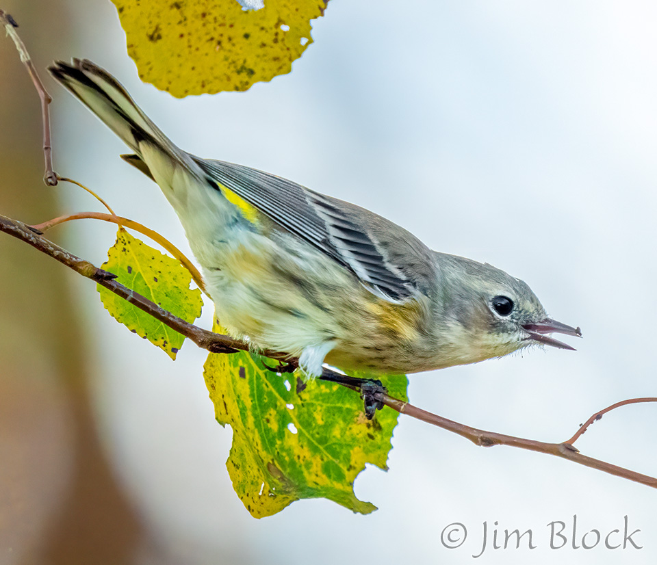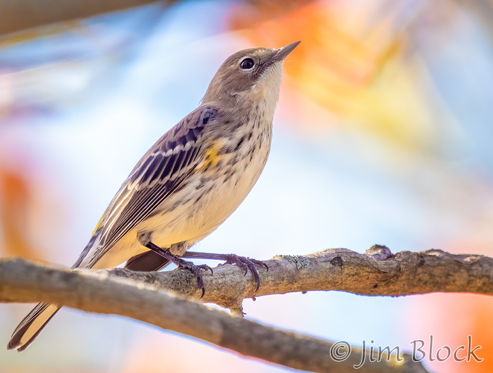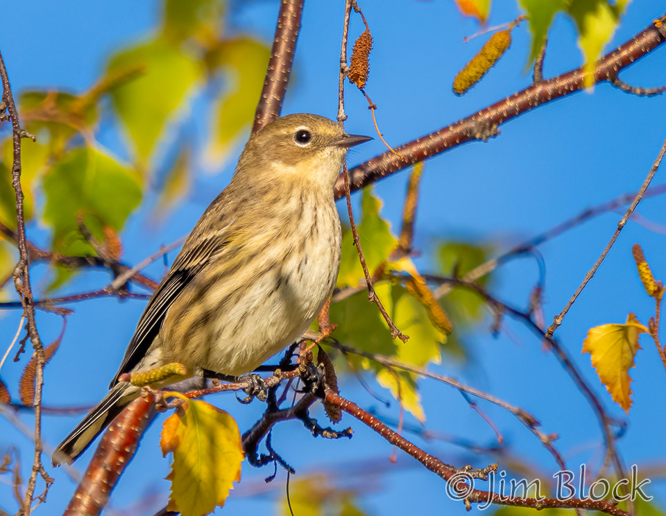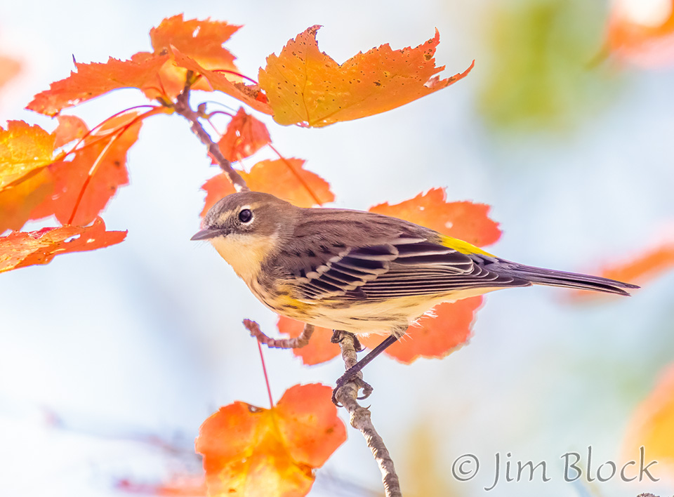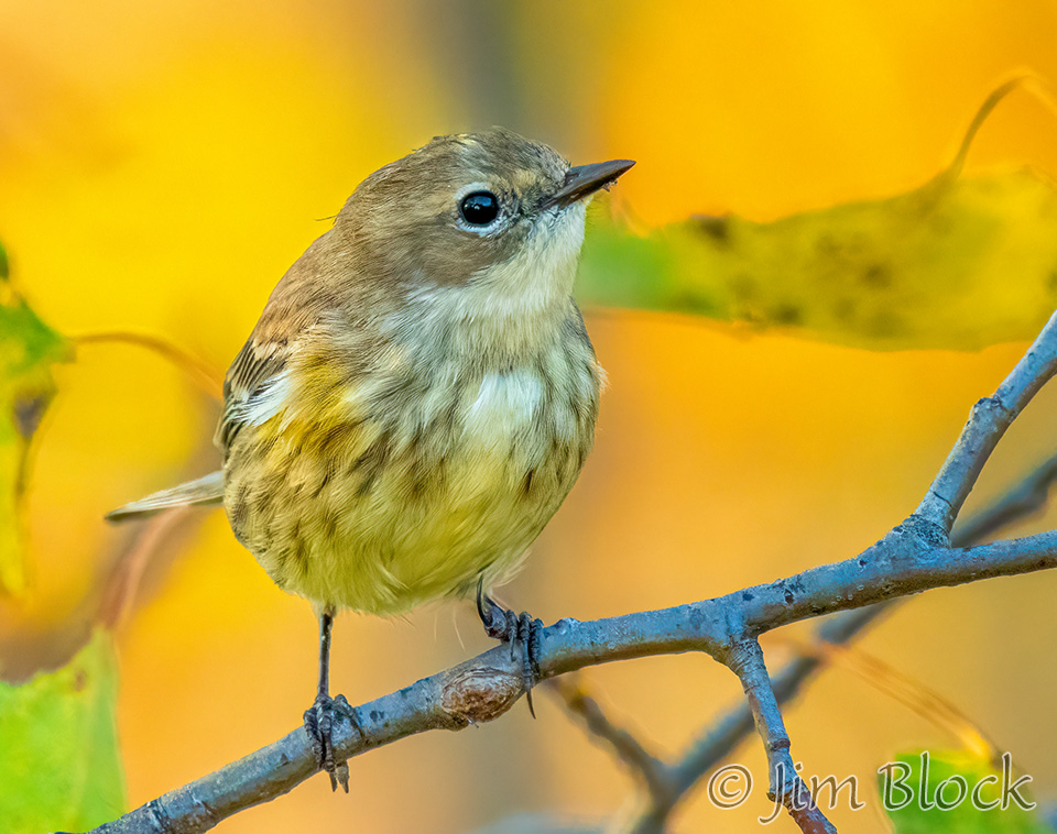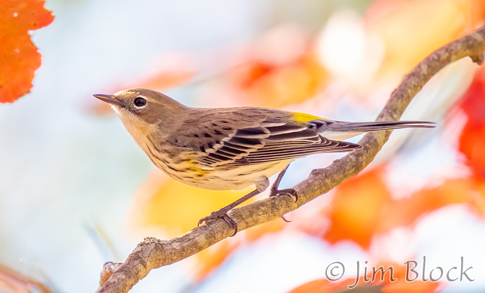 While hoping to find nice foliage, I found a very mixed flock of birds along Hardscrabble Road in Lyme. It included this Yellow-rumped Warbler.