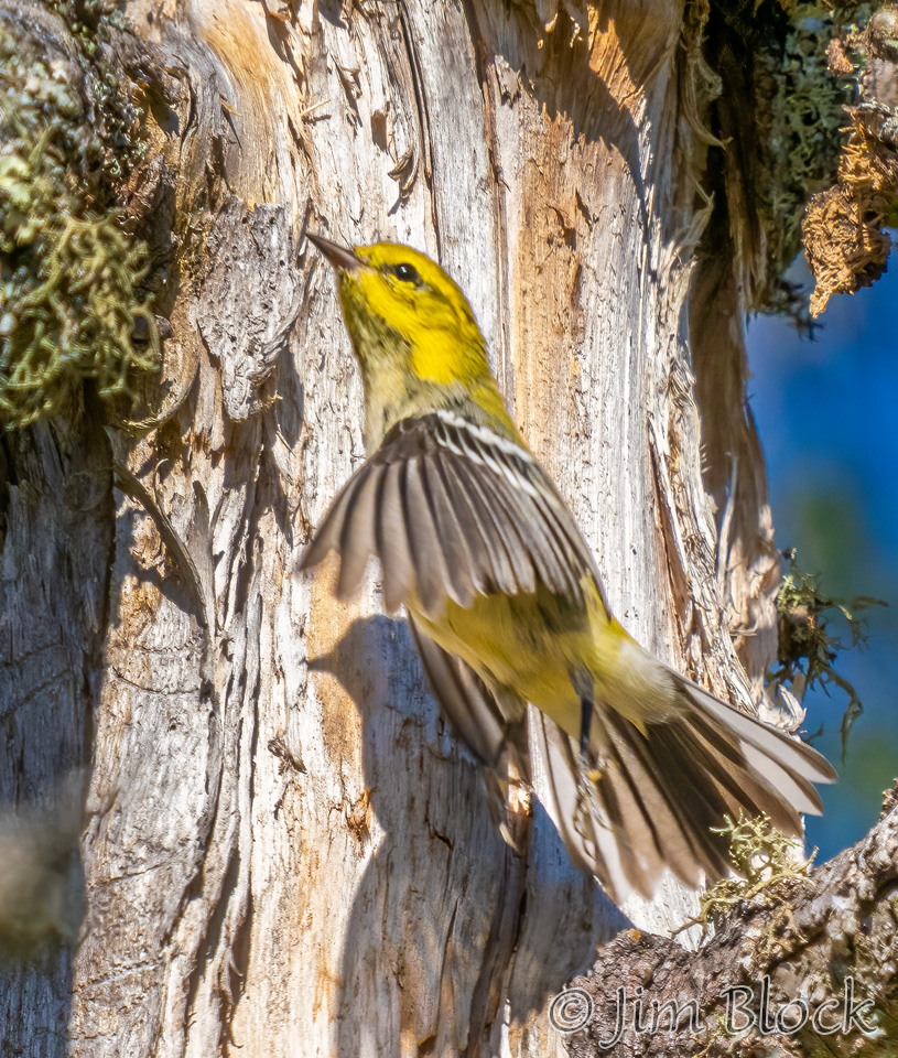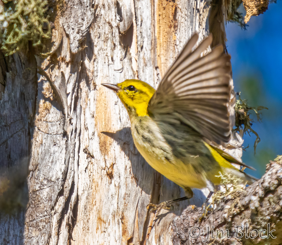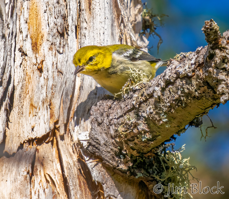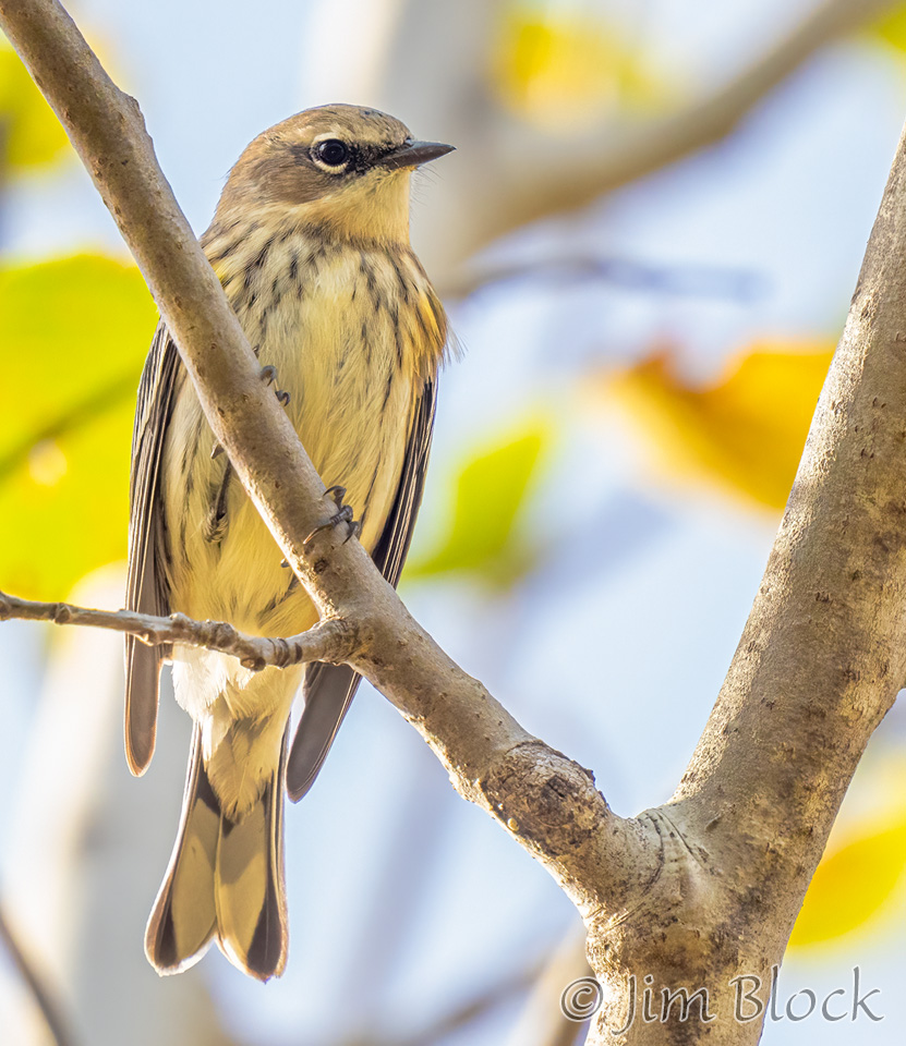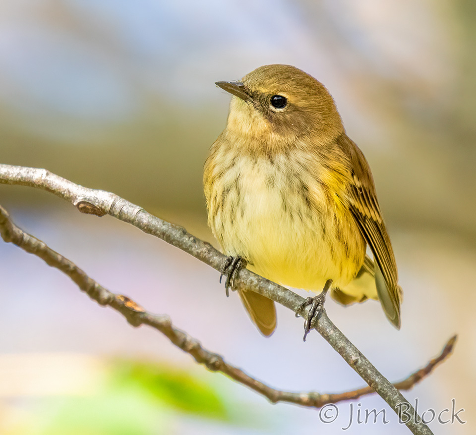 I was shooting fast and furiously at the fast-moving Yellow-rumped Warblers in our yard and was surprised to find one photo of a Pine Warbler among the images.