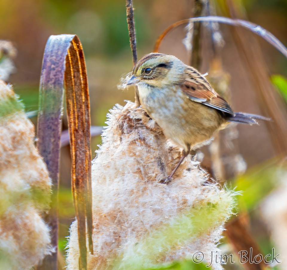 White-throated Sparrows made their appearance this fall. I photographed one seemingly gathering nest material (this time of year?) at Campbell Flat. Due to operator error, these photos were taken handheld at 1/8 sec (!) with a 1400 mm (eq) focal-length lens.