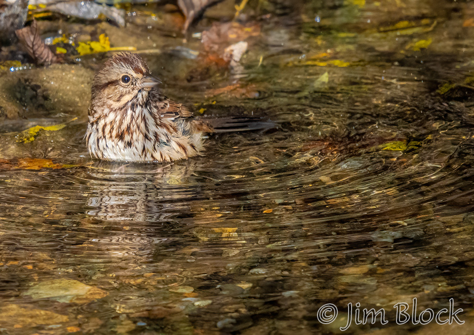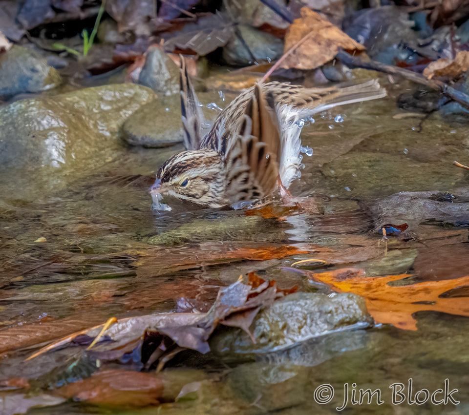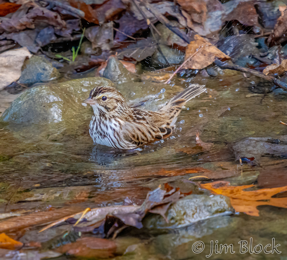 Our most common sparrow is most likely the Song Sparrow. I found one taking a bath in the Saxtons River in Grafton, Vermont, and another one bathing in an upland part of Mink Brook in Etna.