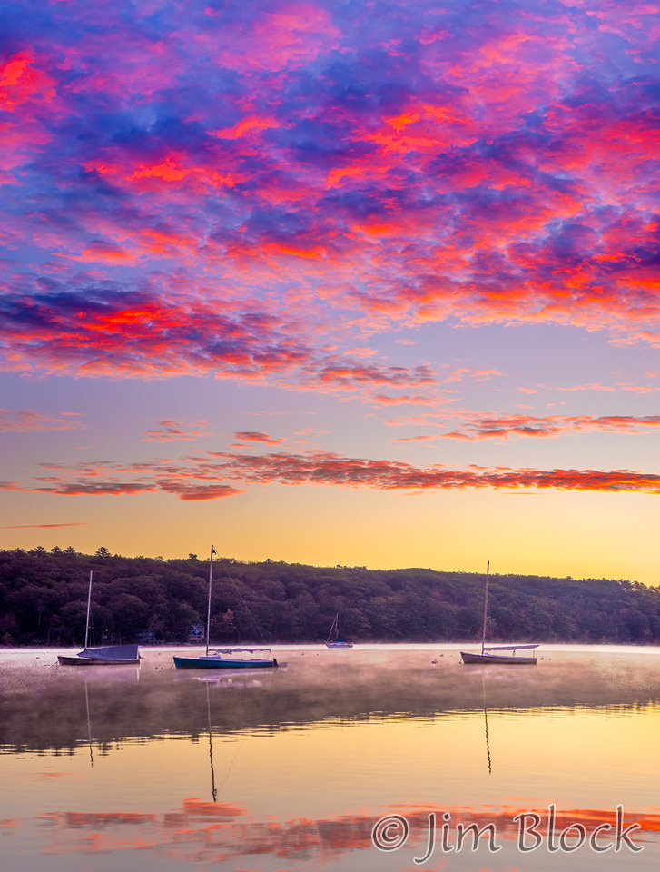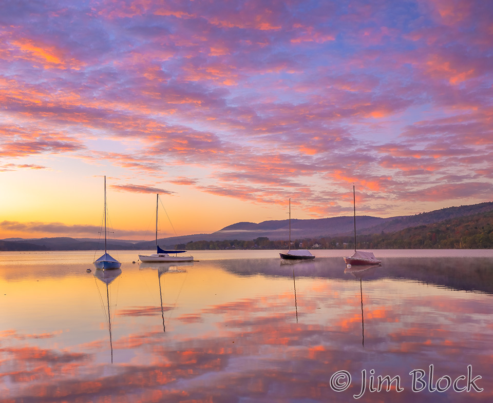 My favorite spot for sunrise in fall is Mascoma Lakeside Park in Enfield when there are still sailboats for foreground interest. Here are photos taken when the color in the sky peaked and a bit later after it faded.