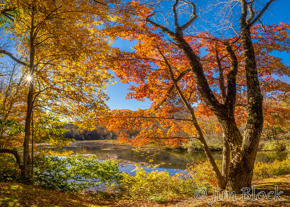 While heading to a favorite spot for early fog, I passed this view of the Mascoma River in Enfield and stopped for some photos. This image was a five-shot panorama that I cropped somewhat.