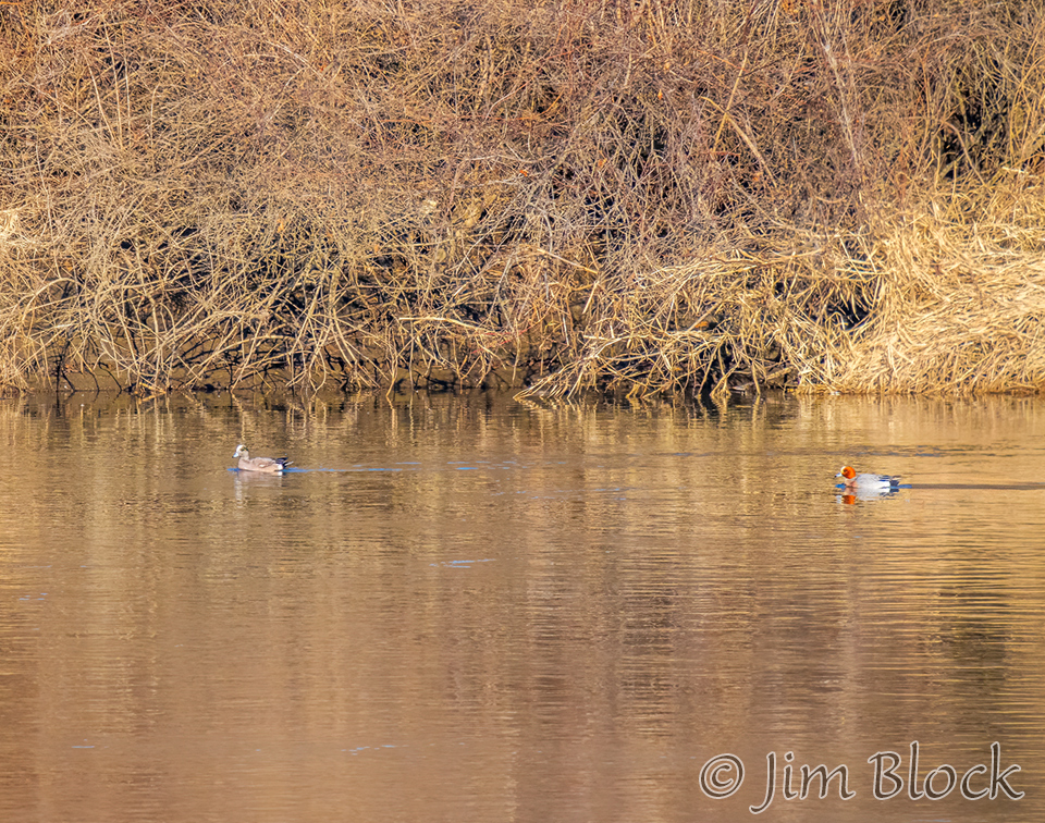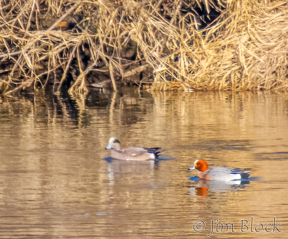An American Wigeon joined it. Here are images that compare the two wigeon species.