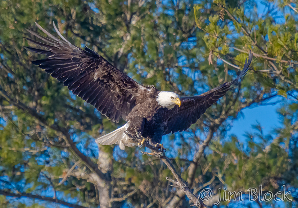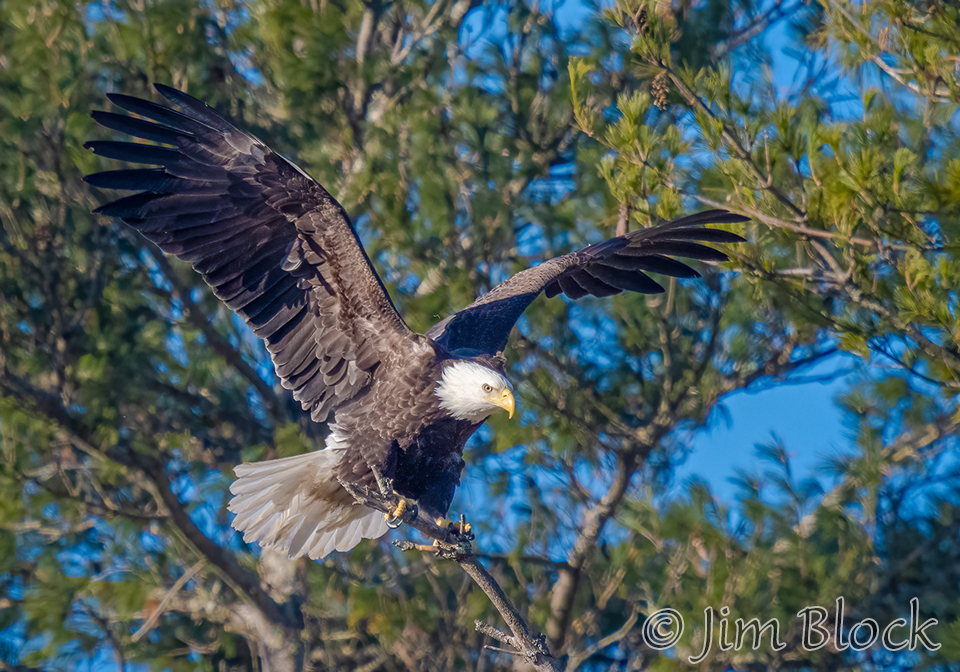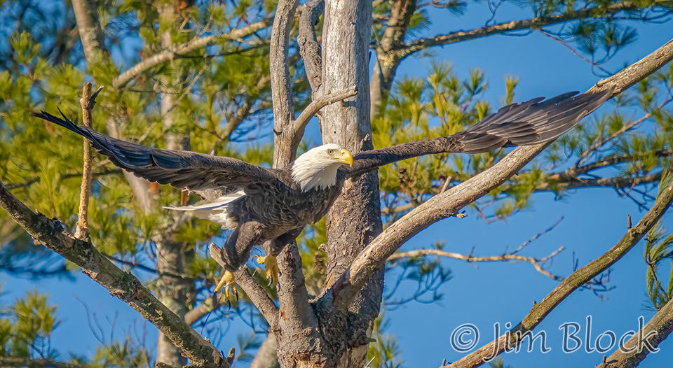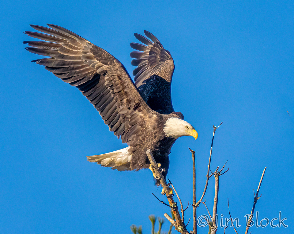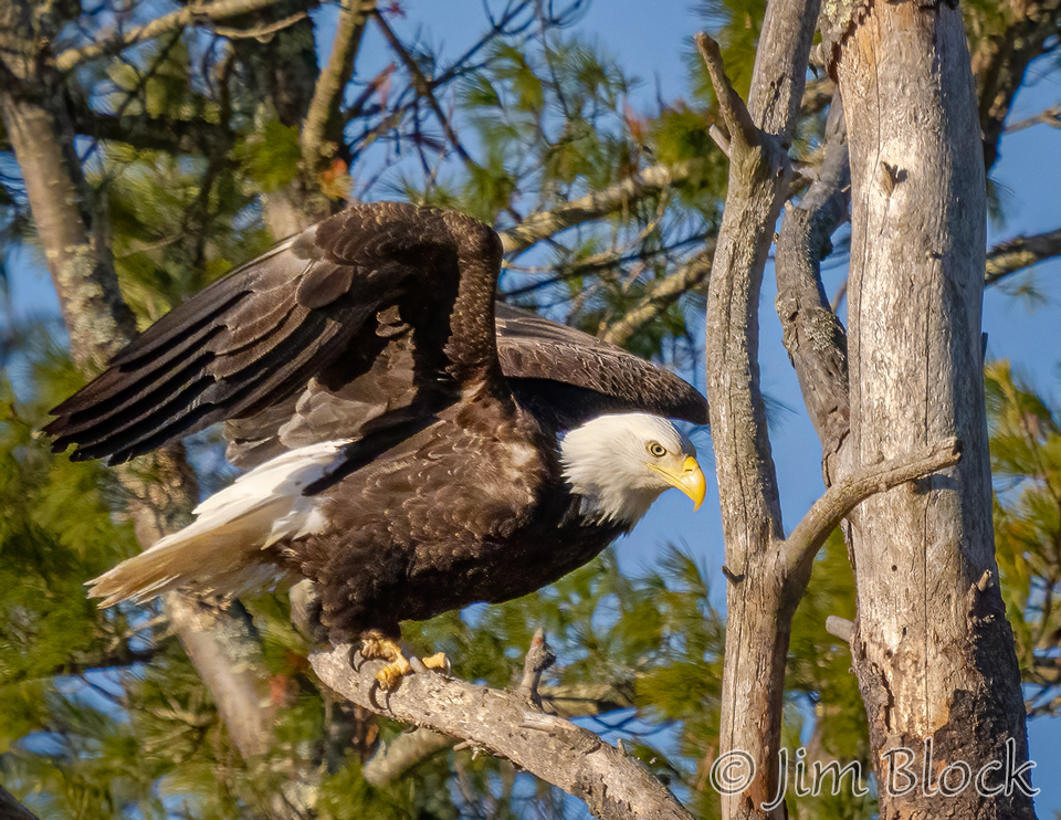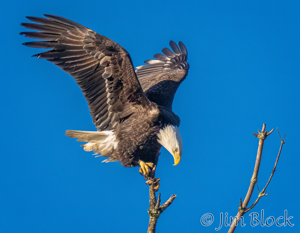 This sequence shows an eagle landing on the top of a dead tree. It landed on a slightly different branch than it looks like it was heading for in the first two photos.