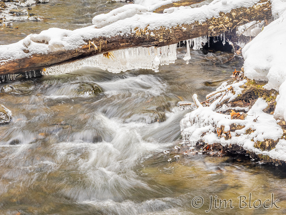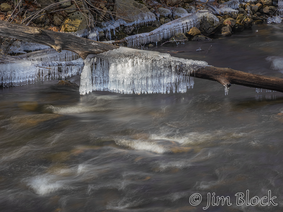 While walking with Jann, she noticed an ice dam below a bridge over the Mascoma River in Enfield. I set my camera for the slowest shutter speed possible without a neutral density filter and braced it on the bridge railing.