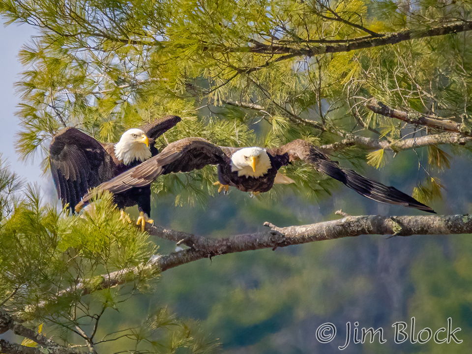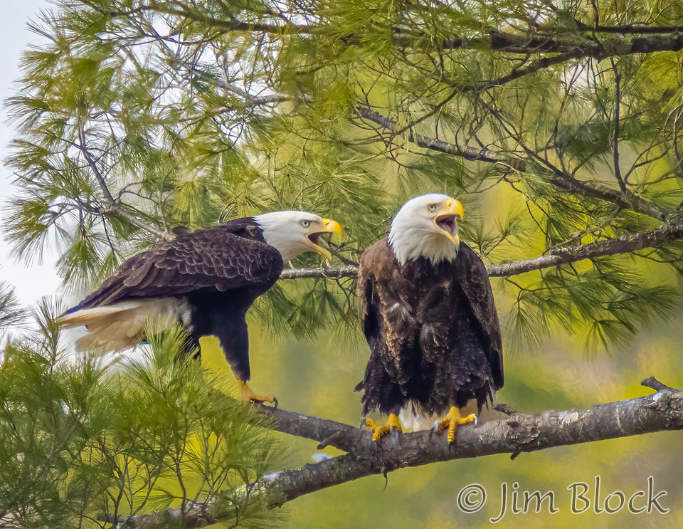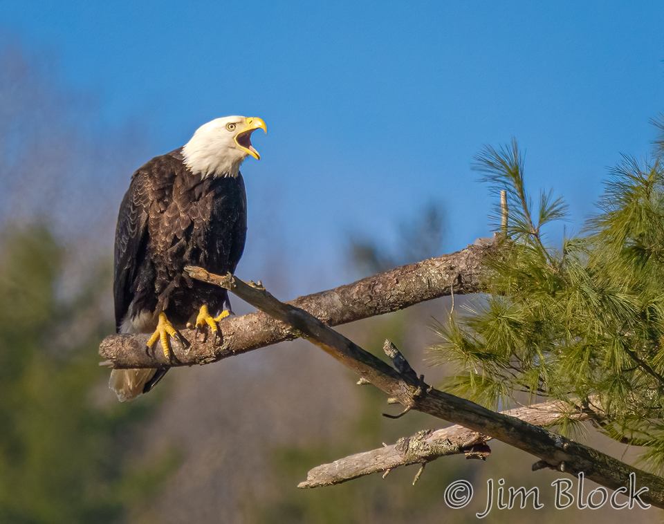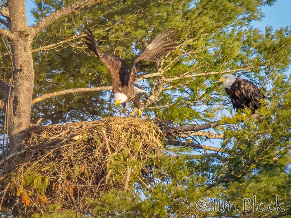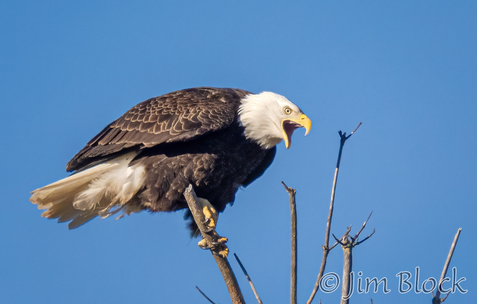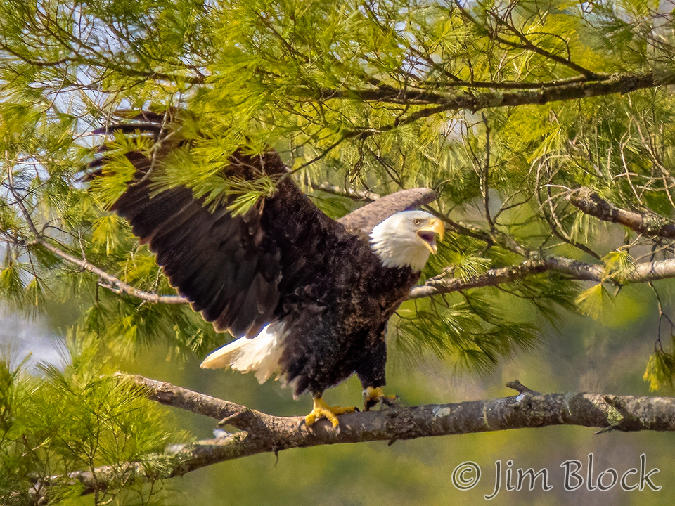 An eagle landed, called for its mate, then departed after three miutes.