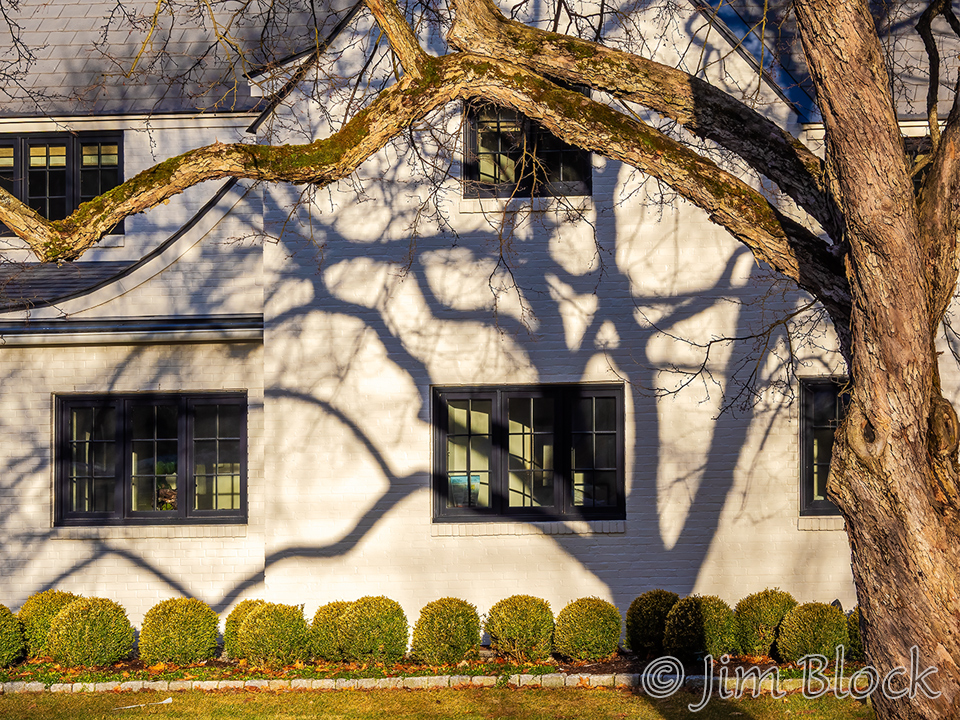 I enjoy capturing both simple and complex images like this lone dark tree and dramatic shadows on a house.