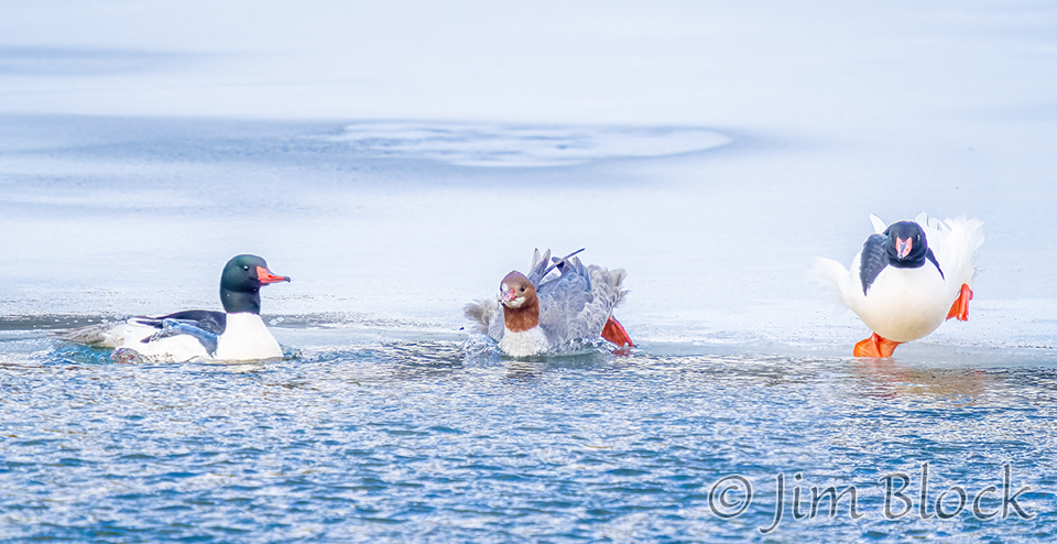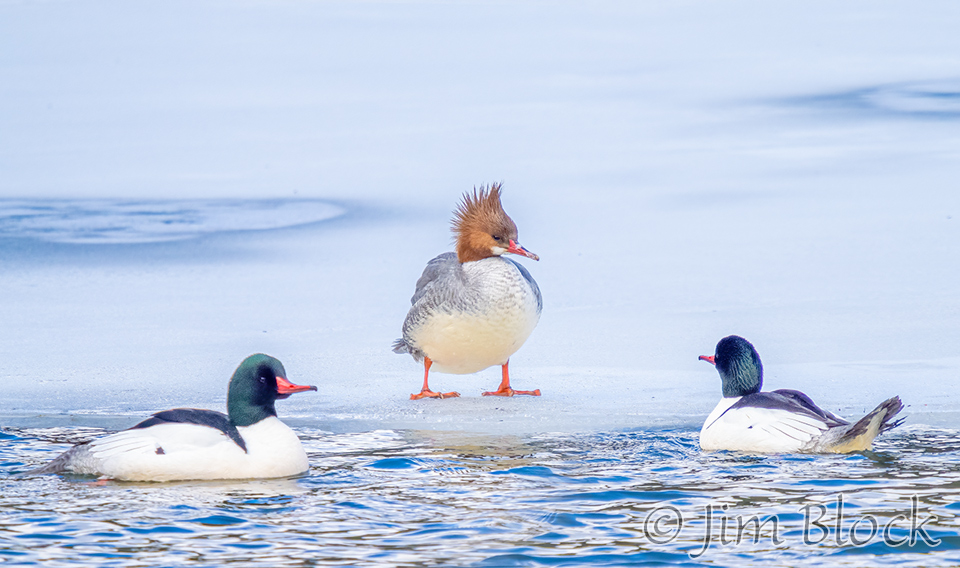 Four days later the Common Merganser were still on the ice.