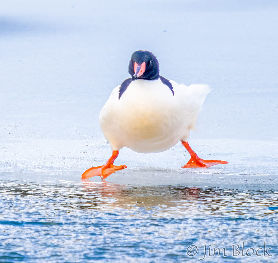 This male seemed to be dipping his toe in the water hoping it was warmer than the ice.