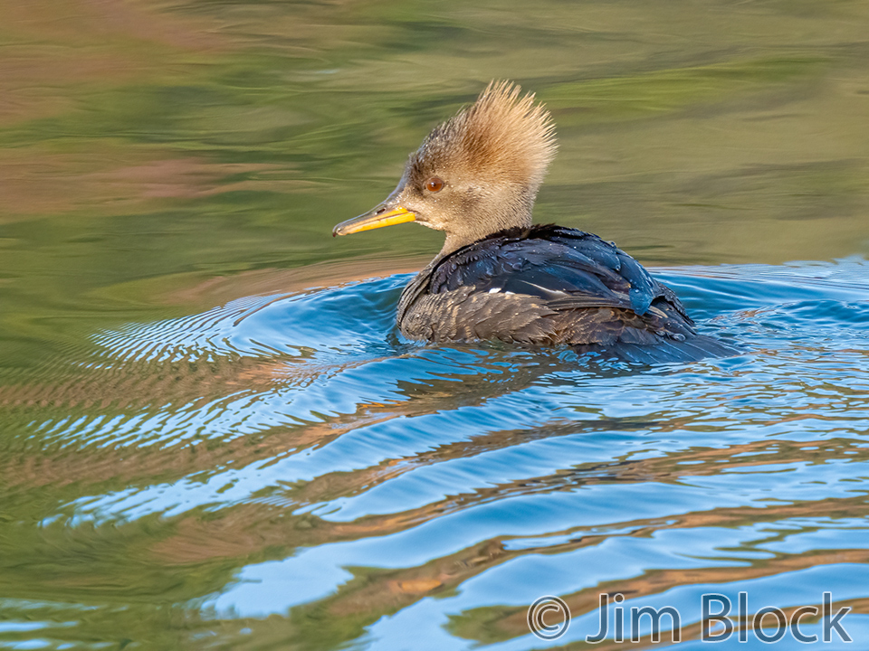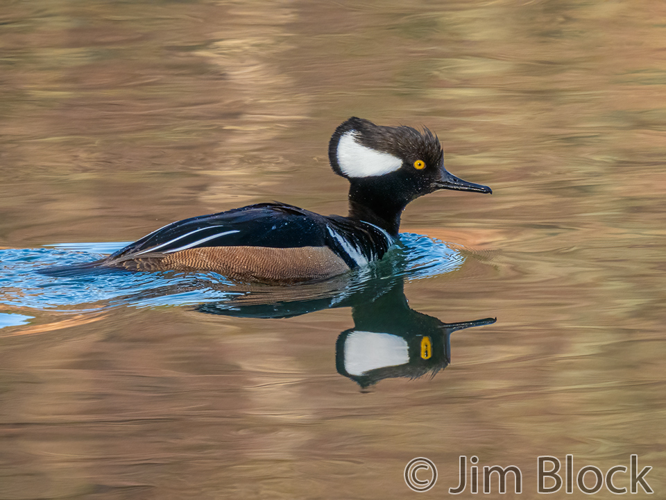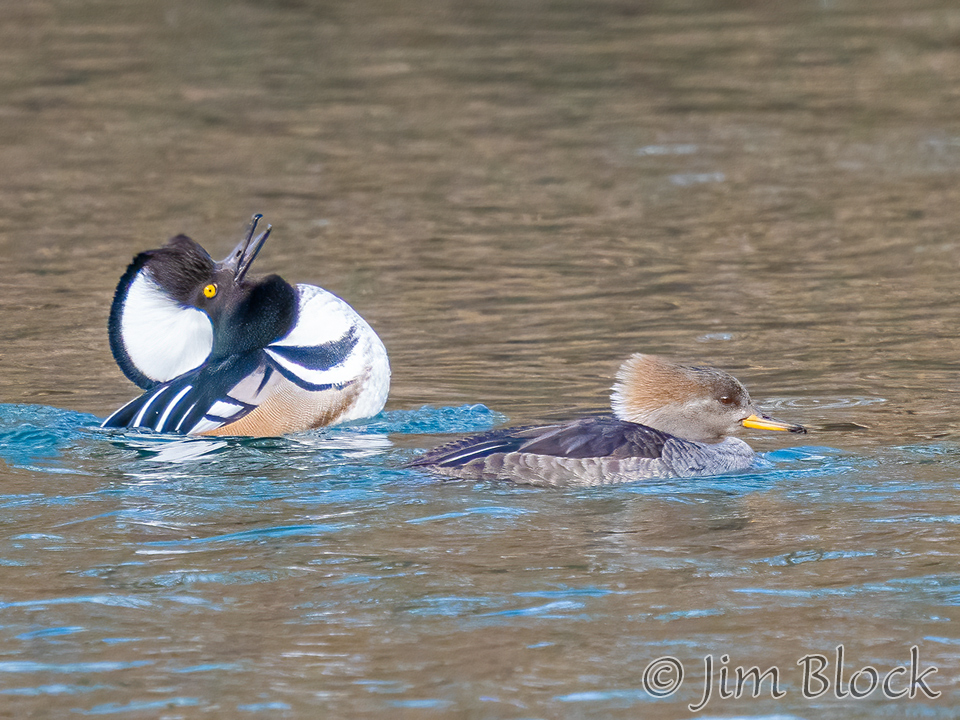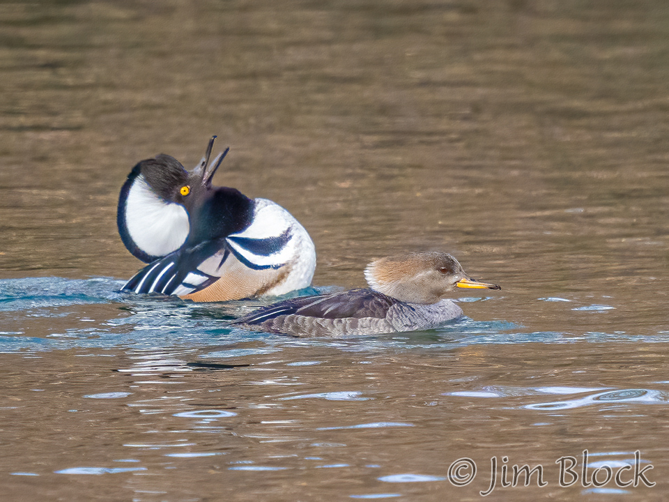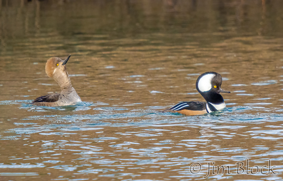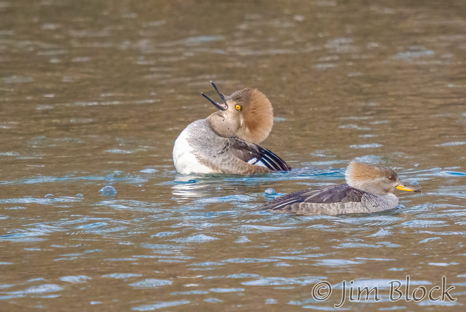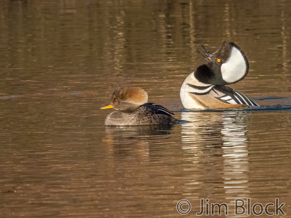 Male Hooded Merganser dramatically pump their heads trying to entice females to choose them as mates.