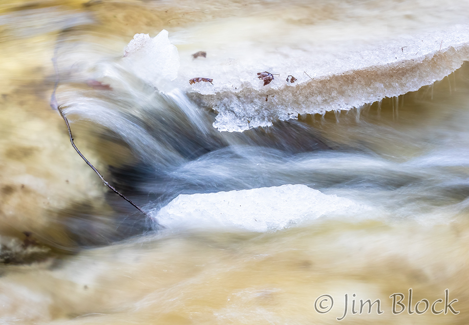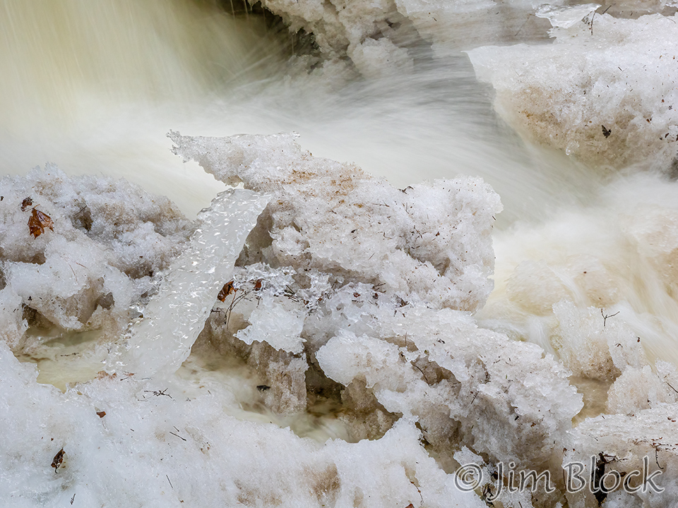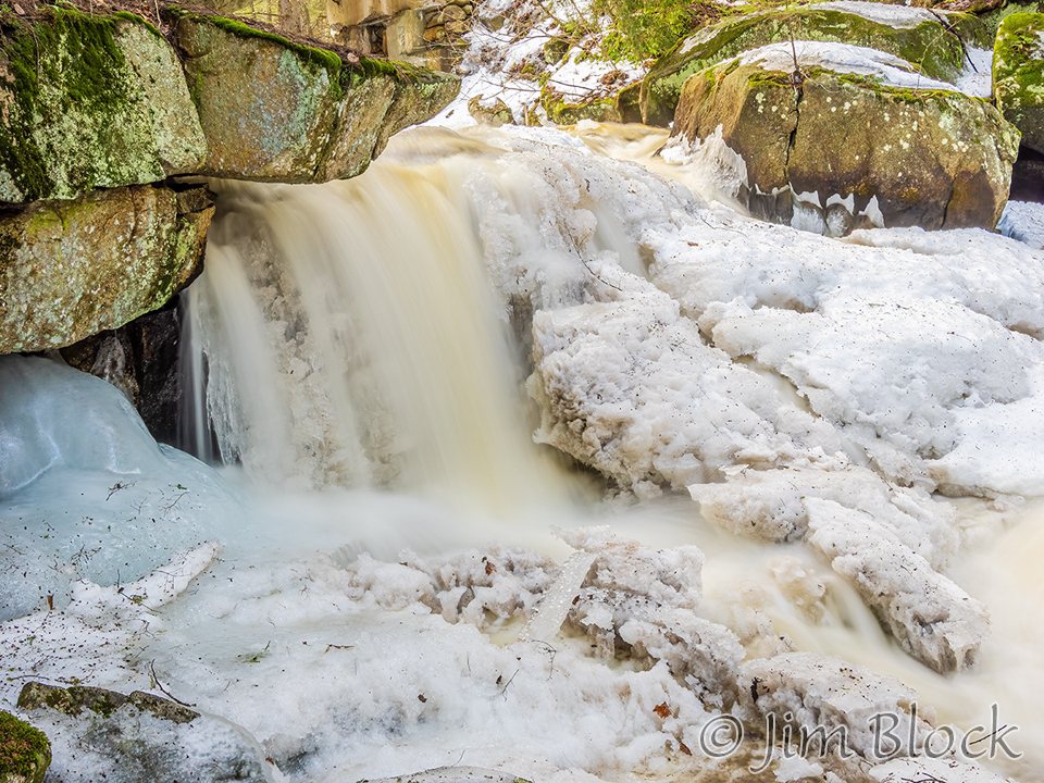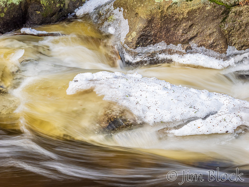 While walking with Jann, she noticed an ice dam below a bridge over the Mascoma River in Enfield. I set my camera for the slowest shutter speed possible without a neutral density filter and braced it on the bridge railing.