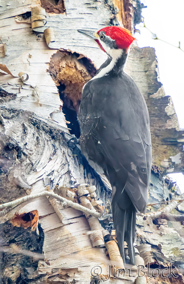 Hiking around Occom Pond in Hanover with Jann, we saw a Pileated Woodpecker.  I retrieved a longer lens from my car while it pounded away at a hole in a birch for a very long time.  It seemed unconcerned by my presence.  I have not seen it since.