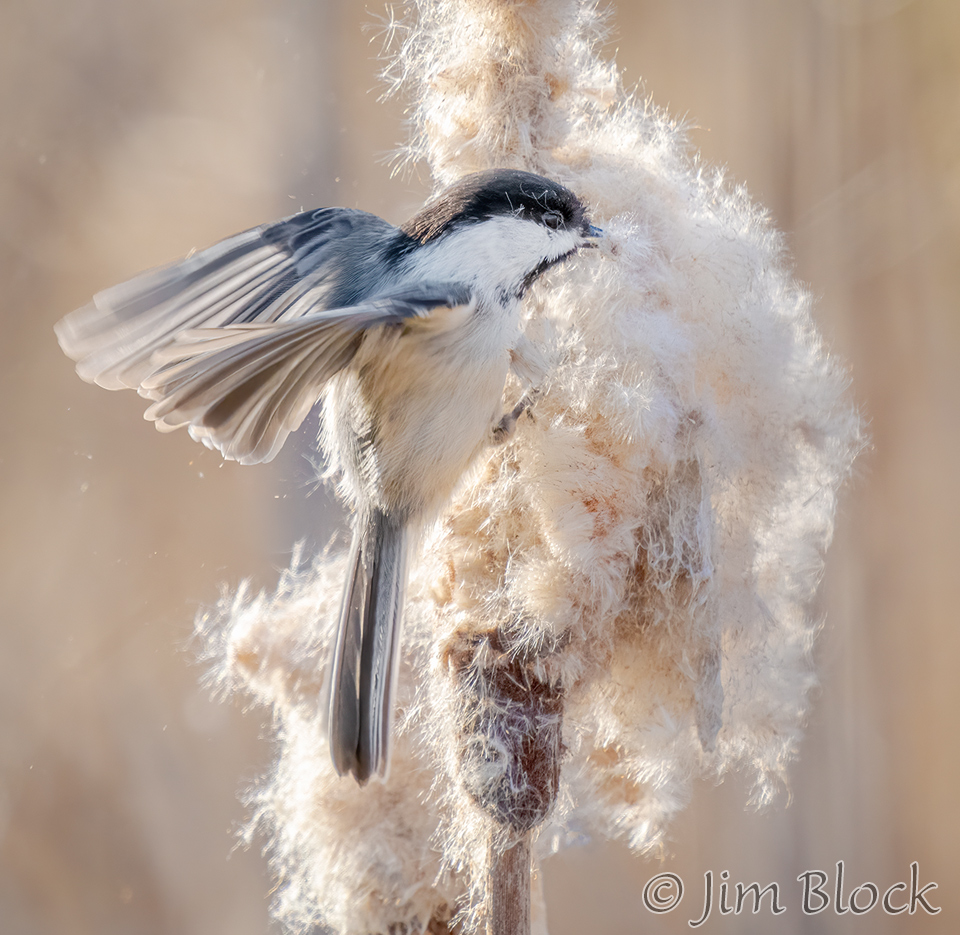 I found a number of Black-capped Chickadees apparently gathering nest material at Campbell Flat.  However, it looked like they were just tearing up the cattails rather than carrying material away.