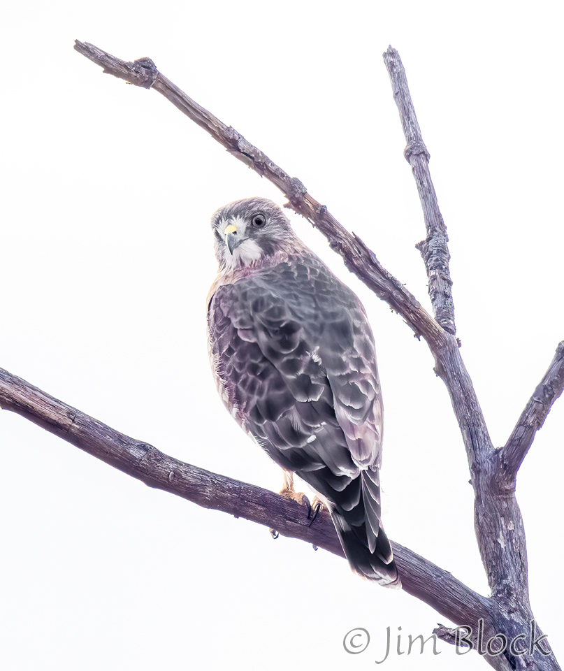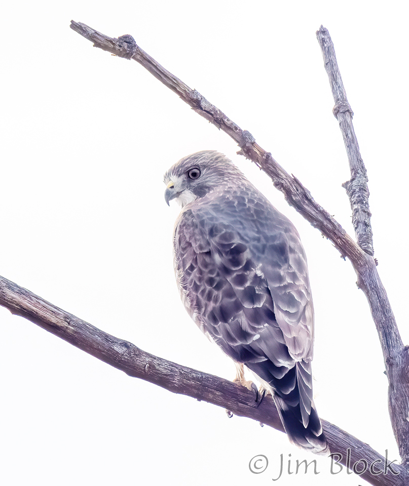 A Broad-winged Hawk landed in a large oak in our yard on April 15 and stayed for a long time.