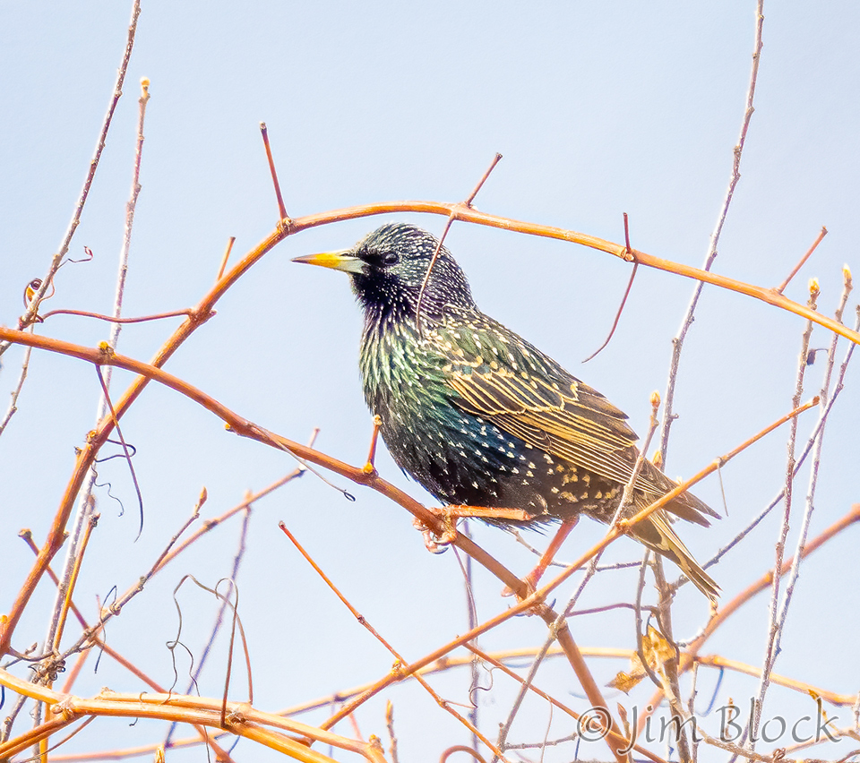 The European Starling is an introduced species, but a beautiful bird in the right light.  This one from Kilowatt South in Wilder, VT,