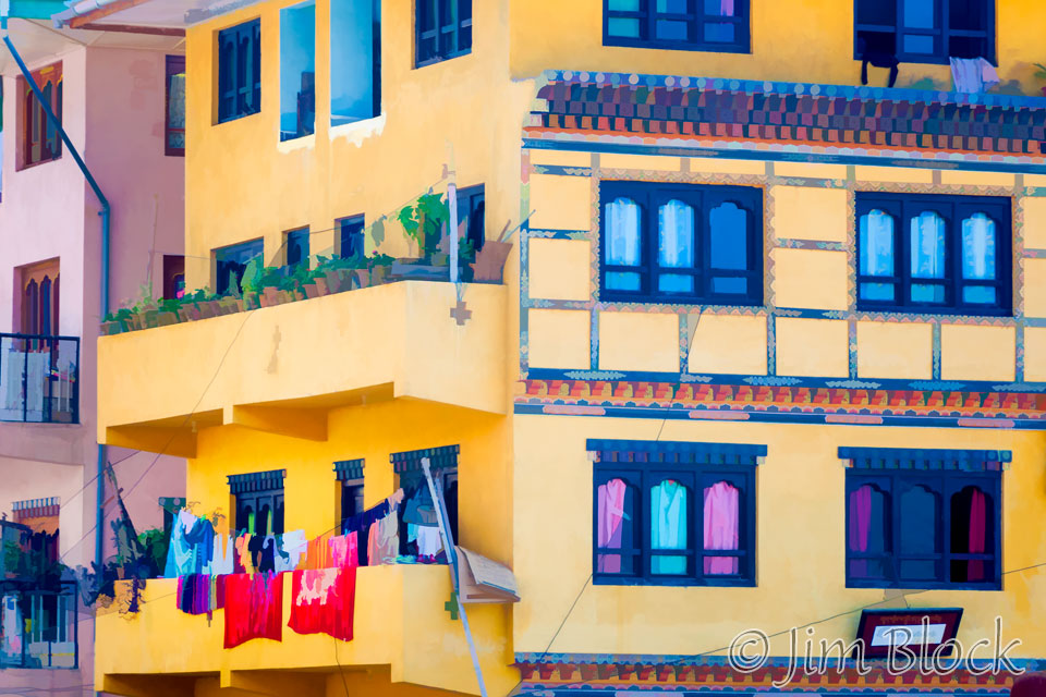 We reached Punakha around noon. I made this painting-like image of apartments and wash.