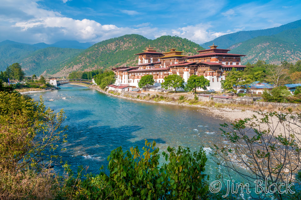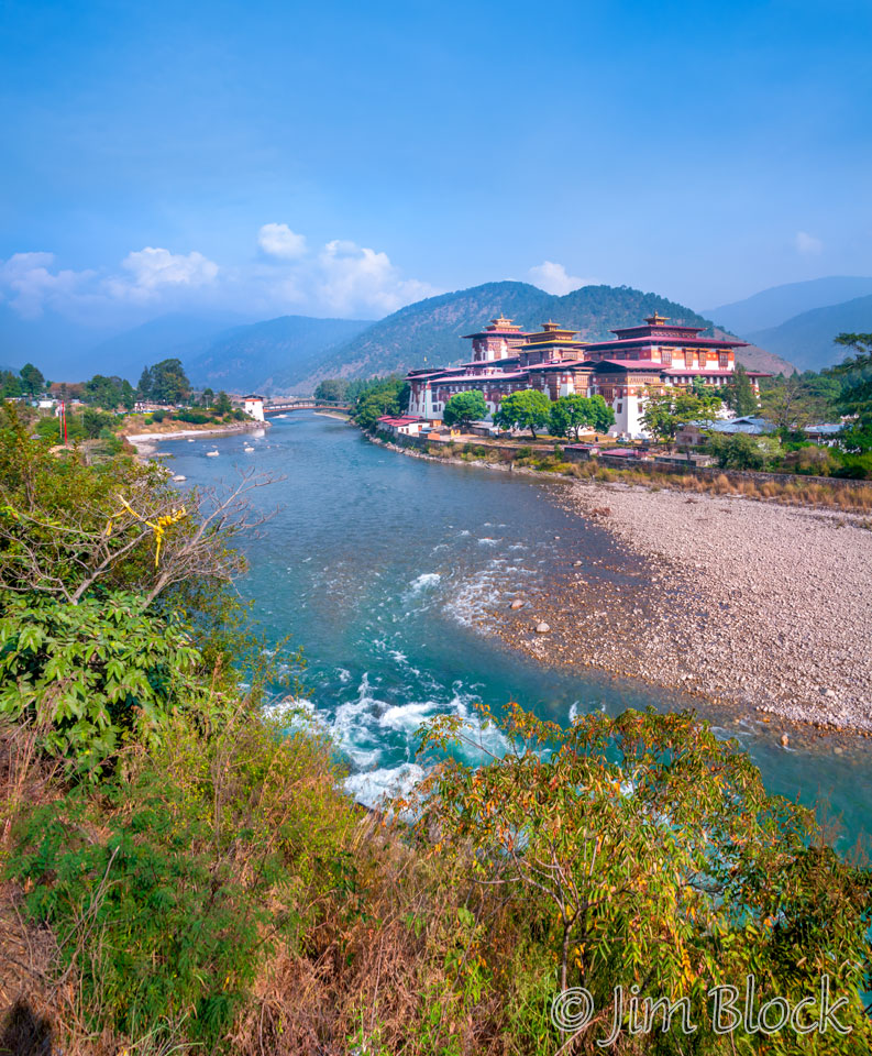 Punakha sits in a beautiful, fertile valley. At 4,100 ft, it was probably the lowest place in Bhutan we visited. It was mild (short-sleeve shirts for us) and a bit hazy and humid when we were there mid-November.