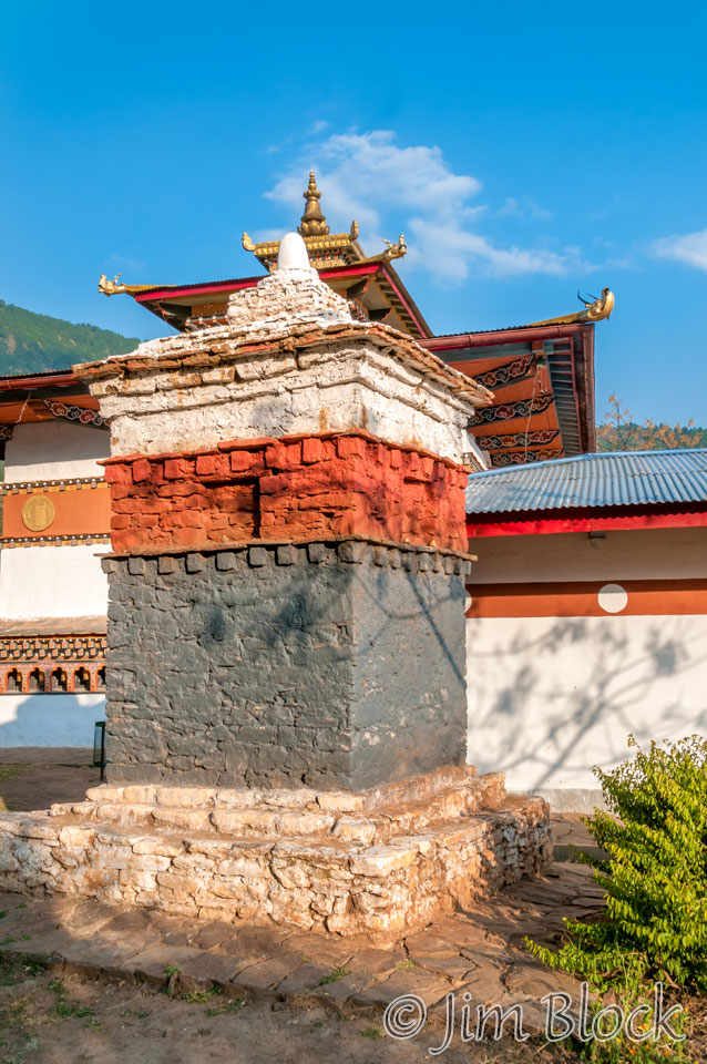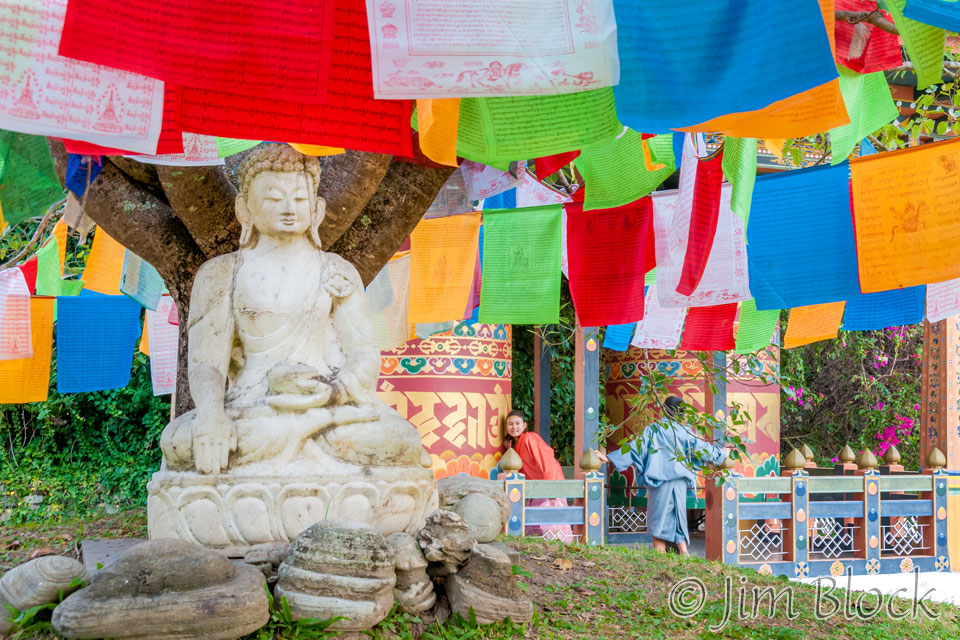 Lakey told us the temple is known as the “no dog monastery” since the Divine Madman killed a demon dog that is supposedly buried under the black stupa shown below left. How they know these things that happened over 500 years ago is beyond me. On the right below is a beautiful tree in the courtyard of the monastery.