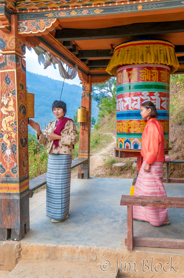 At the prayer wheels we met some women and a boy who were hiking to the temple to pray.